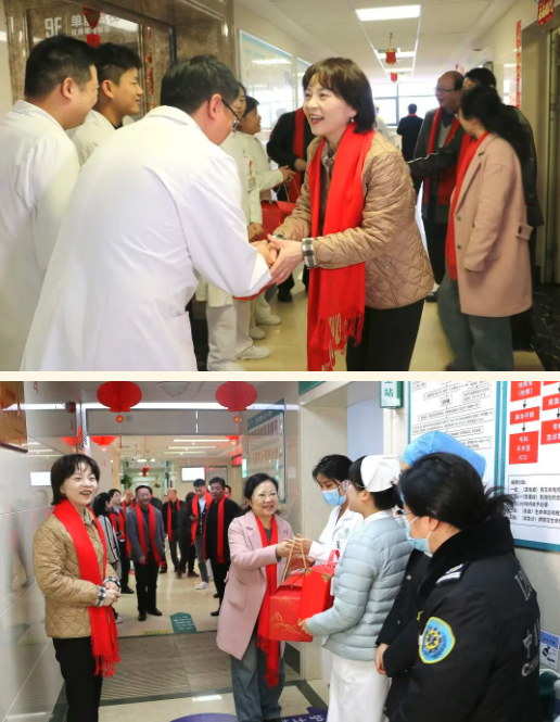 “大家辛苦了!给大家拜年了!”每到一处,院领导都与医务人员亲切握手、热情交谈,详细询问各科室医疗救治、物资储备、人员排班以及后勤保障等情况,关心大家的身体和生活情况,倾听他们的心声,亲手送上精心准备的节日慰问品,并叮嘱大家要照顾好自己。