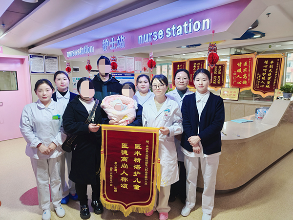 为表达心中的感激,家属特意将绣有“医术精湛护儿童,医德高尚人称颂”字样的锦旗,亲手送到医护人员手中,一句句“谢谢你们”,承载着家属最真挚的谢意,也彰显着余庆县人民医院医患之间的深厚情谊。