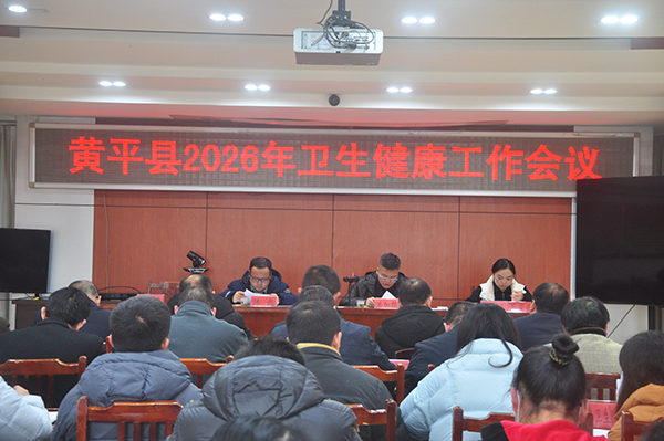 为全面总结2025年全县卫生健康工作成效,部署2026年重点任务,奋力推动健康黄平建设再上新台阶,3月9日下午,黄平县2026年卫生健康大会在县卫生健康局三楼会议室召开。县人民政府副县长洪加朗出席会议,县卫生健康局领导班子成员、局机关(计生协会)全体干部职工、县人民医院、县中医医院、县妇幼保健院党委书记和院长、县疾控中心主任、11个乡镇卫生院党支部书记、院长以及民营医疗机构主要负责人参加会议。
