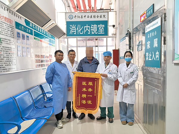 3月10日,一面写有“服务一流·医术精湛”的锦旗被送到开阳县中西医结合医院脾胃病科与麻醉科。这份特殊的谢意,来自远在辽宁省盘锦市的患者徐先生。