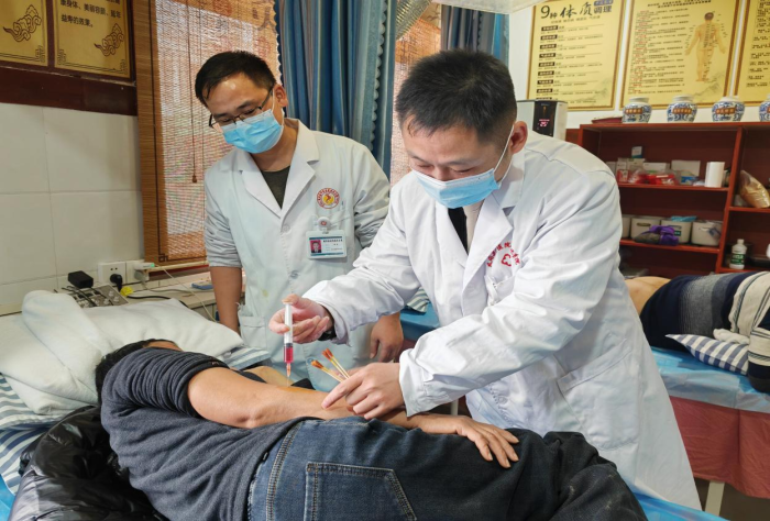 走进凤冈县总医院进化分院中医科,只见县总医院下沉医疗专家安厚直专注地为患者蒋某进行活血化瘀通经络针剂的注射。他一边操作,一边轻声安抚着患者:“别太担心,用药之后症状会有明显的改善,过段时间再来复查就好。”