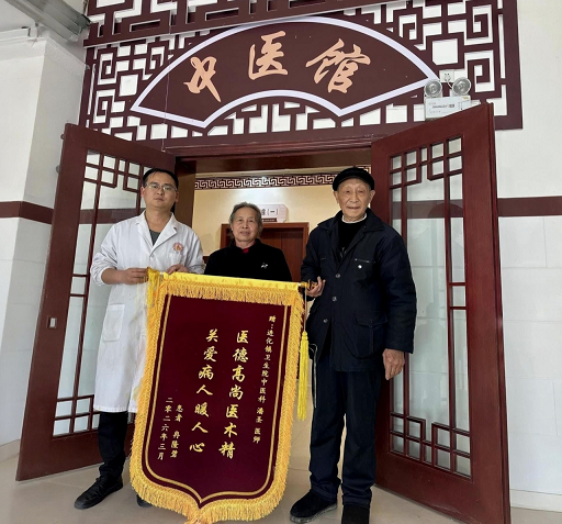 3月13日,冉奶奶和老伴满怀感激地走进凤冈县进化镇卫生院中医馆,将一面印有“医德高尚医术精、关爱病人暖人心”字样的锦旗送到潘医生手中,满是感激地说:“多亏了潘医生,要不是你们,我这带状疱疹疼痛病还要被折磨多长时间才好。”