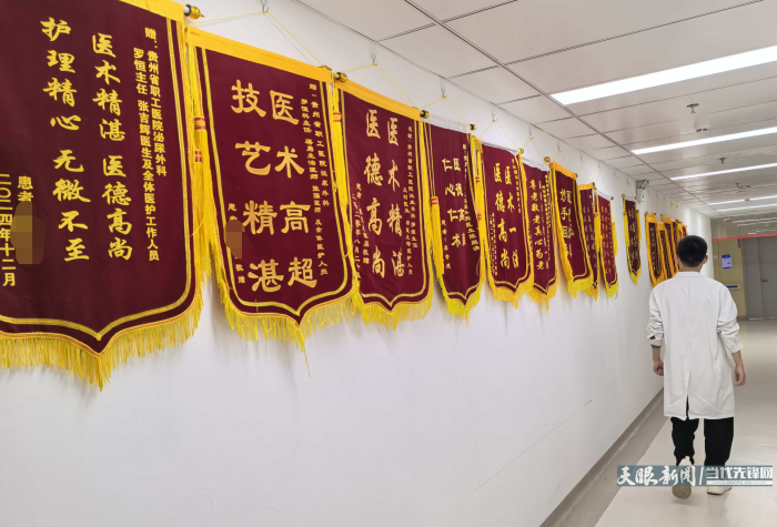 走进贵州省职工医院泌尿外科,50多米的走道墙壁上挂满了锦旗,其中有一面写有“医术高超 技艺精湛”的锦旗是专门送给科主任罗恒和医生蒋勇、张强的。