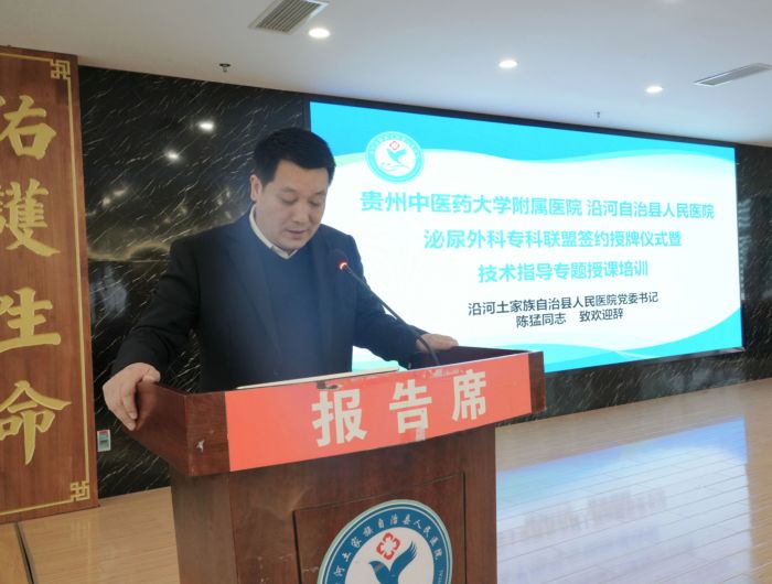 会上,沿河土家族自治县人民医院党委书记陈猛致辞,对贵州中医药大学第一附属医院专家团队的到来表示热烈欢迎。他指出,此次专科联盟的建立是医院推进学科建设、提升医疗服务能力的重要契机,希望借助省级医院的技术优势和专家资源,培养一批本土化泌尿外科专业人才,带动科室诊疗技术水平整体跃升,为县域群众提供更优质的医疗服务。