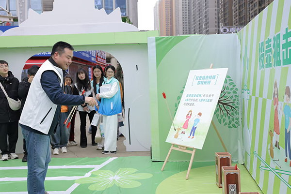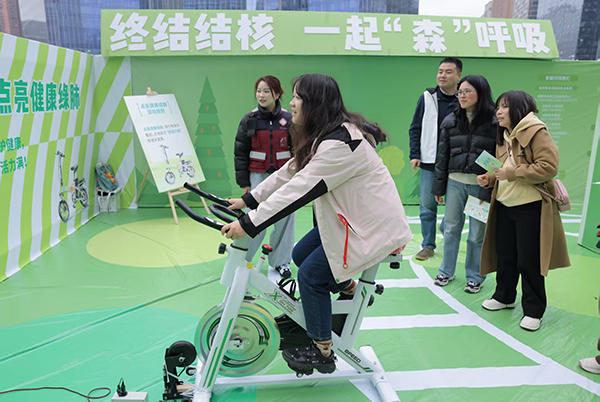 活动现场,市民穿梭于迷宫,开启闯关之旅。“投壶狙击结核”以传统投壶游戏为载体,让市民在互动中强化结核防治意识,传递“主动防控、远离结核”的理念;“你比我猜”板块,工作人员通过肢体语言演绎咳嗽、低热、盗汗等结核病典型症状,帮助市民掌握疾病早期识别要点;“点亮健康绿肺”关卡中,市民通过蹬自行车产生电能,点亮“绿肺”装置,传递运动增强免疫力、守护生态健康的理念。完成闯关的市民可领取到“绿色种子”,寓意播撒终结结核的希望,推动全民参与结防行动。