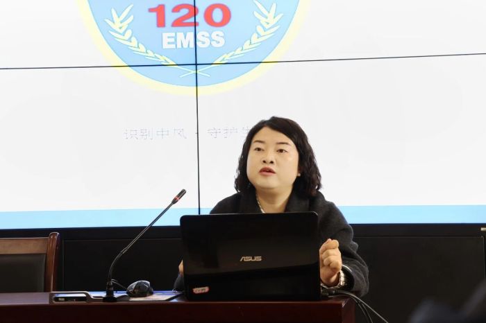讲座中,来自黔东南州人民医院神经内科专家蒋莎莎结合临床实例,深入浅出地讲解了脑卒中的发病机制、高危因素、快速识别方法及急救措施。蒋莎莎强调,脑卒中具有高发病率、高致残率、高死亡率的特点,早发现、早诊断、早治疗至关重要。通过生动的“中风120”口诀(“1”看一张脸和一双眼,“2”查两只胳膊和两条腿,“0”聆听语言和任一症状突发立即拨打120),并引导在场职工快速掌握卒中早期识别技巧,建议大家保持健康的生活方式,合理膳食、适量运动、戒烟限酒,从源头上预防脑血管疾病的发生。