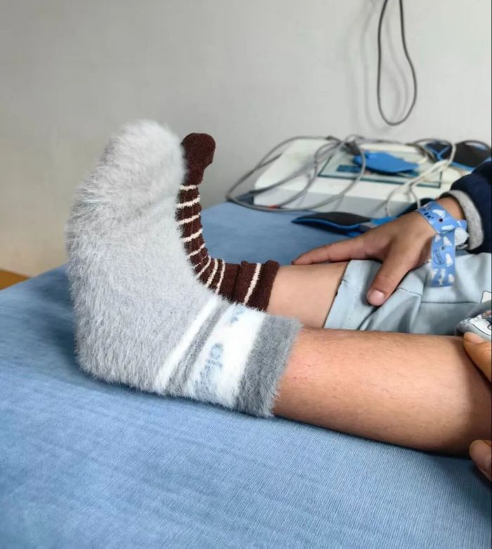 两个月前,活泼好动的小彭因外伤导致左跟腱断裂,并伴有跟骨部分骨折。虽在外院接受了手术治疗,但术后左踝关节持续疼痛、活动受限,无法正常负重行走。看着孩子日渐消沉,家长心急如焚。“听朋友说七星关区人民医院康复科很不错,我们立马就带着孩子过来了。”