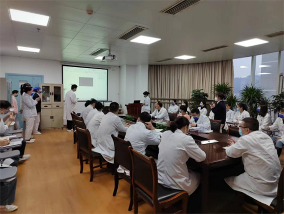 为提高有效救治,降低重症率,耳鼻喉科主任刘兆辉、副主任张春林、护士长庞雯,积极按照医院安排部署,落实患者收治相关工作。尽管科室医务人员相继感染,但是大家症状稍好转后都迅速回到岗位,尽心尽力救治患者。科室还专门邀请呼吸与危重症医学科孙德胜副主任医师进行授课指导。