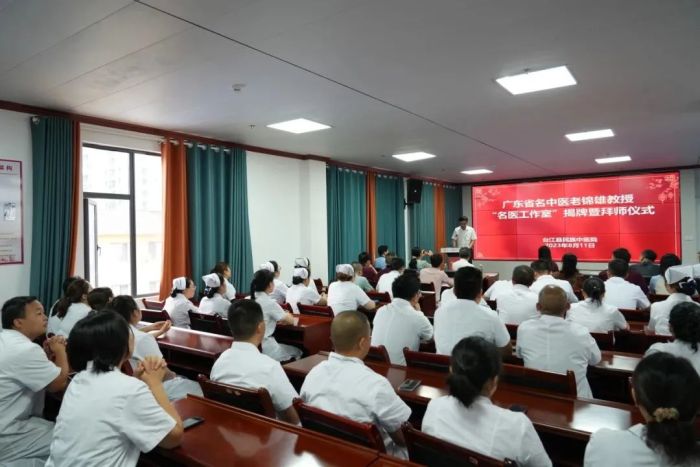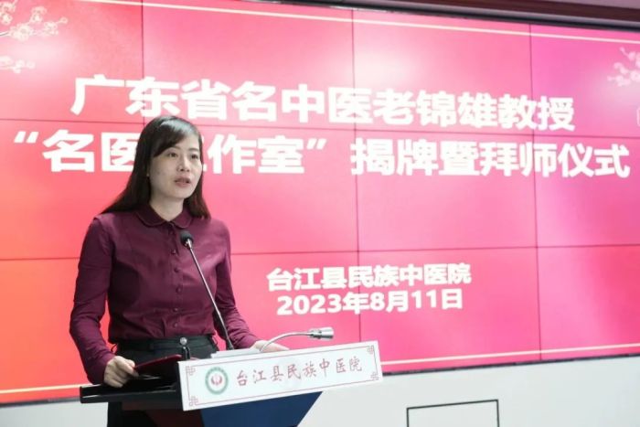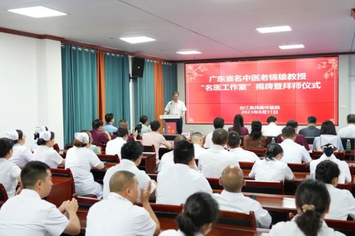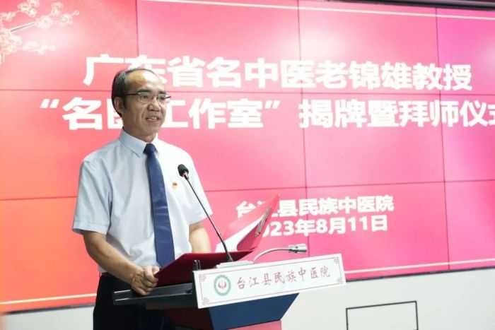 为推动优质医疗资源扩容下沉发展,发挥中医药优势,加快基层医疗机构中医药人才队伍建设,提升基层医疗服务能力,在佛山市卫生健康局、佛山市中医院的大力支持下,8月11日上午,广东省名中医老锦雄教授“名医工作室”揭牌暨拜师仪式在台江县民族中医院举行。