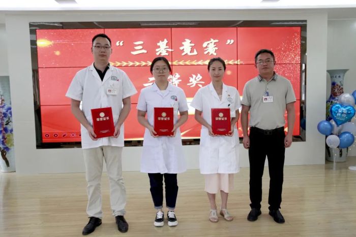 医院在家领导班子成员对医院参加省市级技能竞赛中取得优异成绩的医师,院内优秀医师、三基竞赛等31名医师,5个优秀科室,给予表彰并颁发荣誉证书。