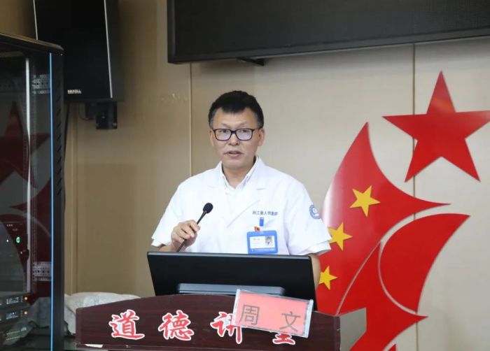 最后,周文院长代表院领导班子成员向全院医师致以节日问候和美好祝愿,向辛勤付出和无私奉献的帮扶专家、常年奋斗在临床一线的医师们表示衷心的感谢和崇高的敬意,同时向获奖医师表示祝贺,并希望全院医师们向他们学习,为医院的高质量发展作出应有的贡献。