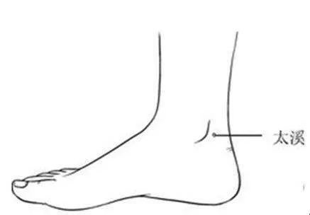 太溪穴位于内踝间和肌腱之间的凹陷处。