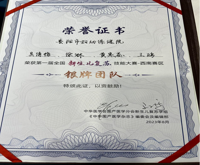 贵阳市妇幼保健院产儿合作复苏团队在首届“全国新生儿复苏技能大赛”西南赛区比赛中荣获“银牌团队”