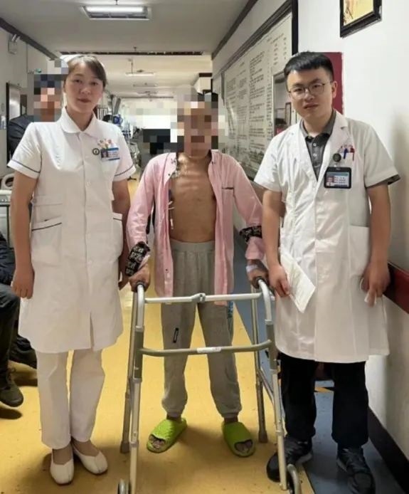 近日神经外科的病房走廊上,26岁的小于(化名)正借助助行器慢慢挪动。10天前,刚住院的他连翻身都需要医护人员辅助,生活质量低到极点。毕节市中医医院神经外科团队为其手术后,全身瘫痪的小于终于重新站立起来。