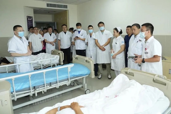中南大学湘雅医院泌尿外科主任祖雄兵一行到贵阳市第一人民医院泌尿外科开展教学查房。祖雄兵教授亲临病区每一位患者床头,详细了解他们的病情,聆听他们的声音,耐心向患者解答问题,并一一制定了详细的诊疗计划,受到了患者一致好评。祖雄兵教授提供的“湘雅式”诊疗思路,使贵阳市第一人民医院的医务工作者拓展了在处理泌尿外科系统疾病方面的临床诊疗思维,进一步提高诊断准确性和制定治疗方案的科学性。