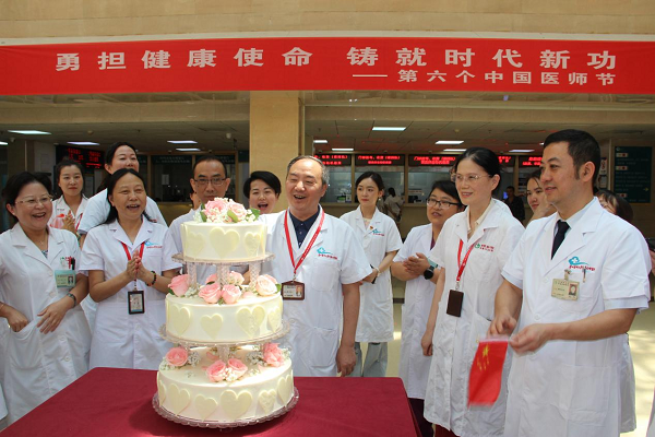 医院还特意为大家定制了精致的蛋糕共同庆祝属于医师的节日。曾庆繁院长携班子成员给全院医护人员送上节日问候和祝福。曾庆繁院长在祝福中说道:让我们一起救死扶伤,钻研医术,崇尚医德,秉持医风,勇担使命,铸就新功。
