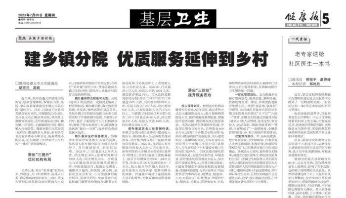 健康报聚焦遵义:建乡镇分院,优质服务延伸到乡村