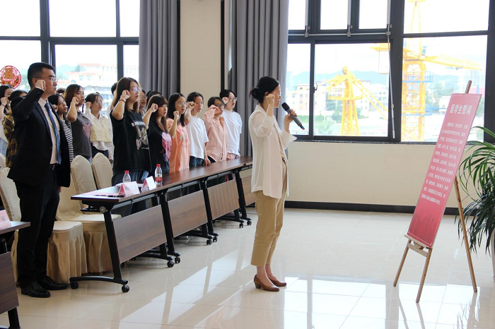 在白云临床教学中心副主任、附属白云医院副院长彭红英的领誓下,2021级新生宣读医学生誓词。