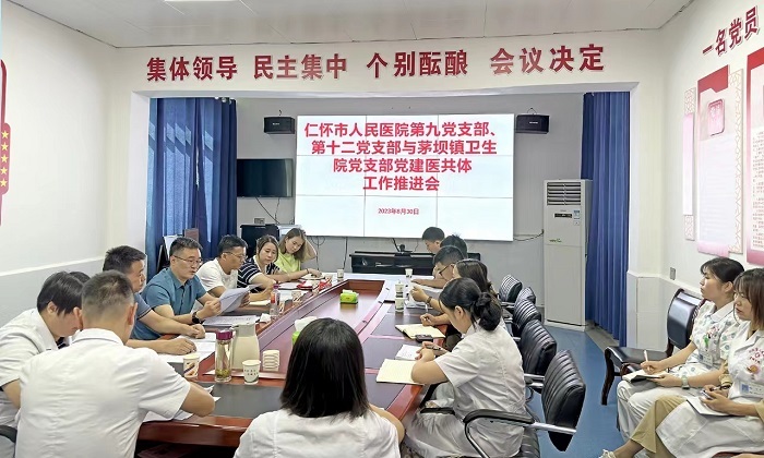 7月26日,仁怀卫生健康局党委印发《关于开展公立医院和乡镇卫生院(街道社区卫生服务中心)党建医共体创建实施方案》,按照“资源整合、优势互补、互利共赢、共同提高”的工作思路,将医共体牵头单位下属党支部与联系各分院党支部组建党建医共体,党建医共体内共享党建、医疗资源,总院党委下属党支部通过结对帮扶、互派学习等方式,每月选派党务干部、医疗专家到党建医共体开展党务知识、专业知识培训和专业技能培训。