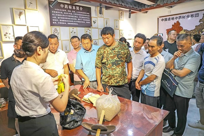 仁怀市中医院讲解员为参加2023年乡村医生能力提升培训班实践技能培训的村医讲解中医药相关知识