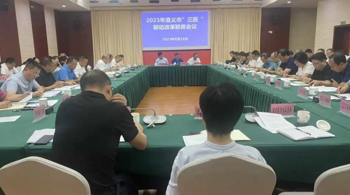 9月19日下午,遵义市召开2023年“三医联动”改革联席会议,市卫生健康局局长、市医改办主任刘勇、市医保局局长向辉、市市场监管局药品总监宋扬、市卫生健康局副局长冷启富及联席会议其他成员单位负责人,县(市、区)卫生健康局、医保局、市场监管局主要负责同志及部分医疗机构负责人参加会议。