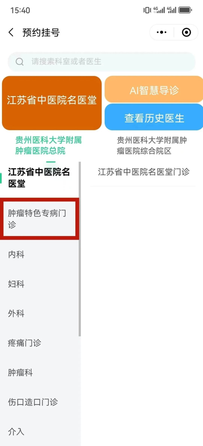 第三步:点击“肿瘤特色专病门诊”