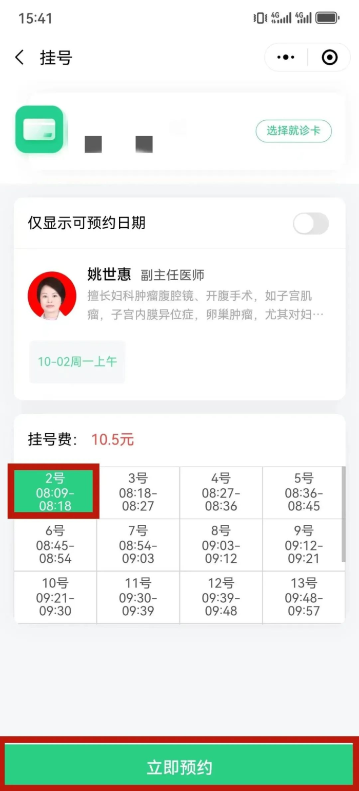 第六步:选择就诊时间段,并点击下方“立即预约”