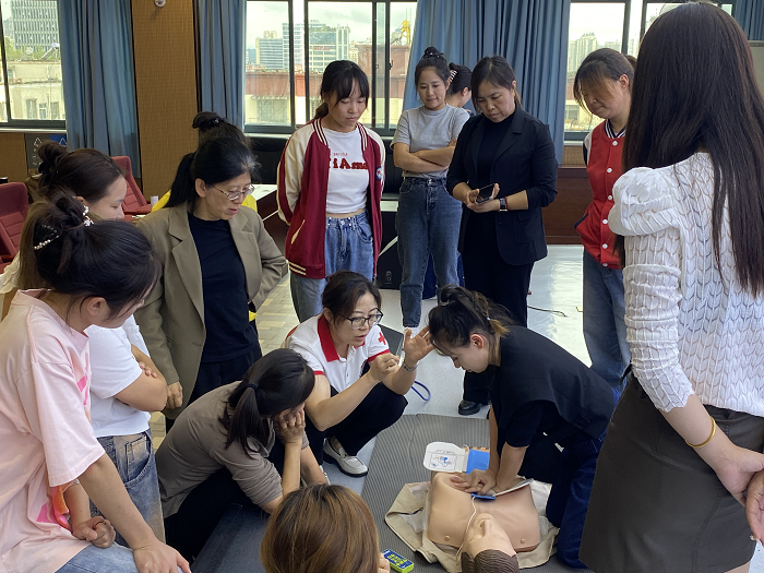 培训分为理论教学和实践操作两个部分。理论主要讲解救护概论、海姆立克急救法、心肺复苏、常见急症、意外伤害等相关知识,然后进行理论知识测试,测试合格后进入实操训练,主要包括止血包扎、心肺复苏、除颤仪使用方法、气道异物梗阻等训练。最后分为两组进行一对一的实操考核,并为考核合格的学员颁发救护员证。