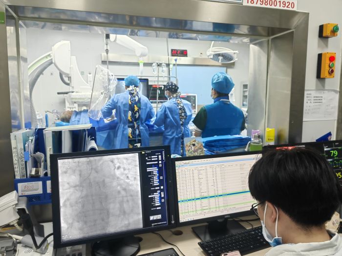 时间就是生命,时间就是心肌!心内科迅速组成救治团队,介入科准备就绪。与时间赛跑、与“死神”竞速,修文县医院接到患者以后,第一时间用轮椅将患者通过紧急通道送至导管室进行手术。