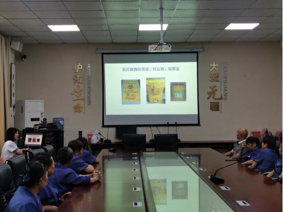 乌当区医共体总院副院长罗红阳及院感部副部长余欣以提升生活垃圾“减量化、资源化、无害化”水平为目标,对全院保洁人员及保安、食堂人员开展了“无废医院”知识及规范管理和处置医疗废物培训。培训围绕“什么是‘无废医院’、为什么要进行垃圾分类、院内垃圾精准投放及分类处理注意事项、如何规范开展医疗废物收集、运输、储存”等知识进行了培训。通过培训,更好地推进生活垃圾分类管理工作,增强大家对垃圾分类知识和“无废医院”创建工作的了解,营造了人人参与无废医院创建及环境保护的良好氛围。该院后勤科科长陈永洪表示,将以创建“无废医院”为契机,持续推进环保意识,减少白色污染,严格做好医废管理,污水日常处理等相关工作。进一步构建优质高效的医疗卫生服务体系,不断优化改善诊疗和就医环境,提升患者看病就医的获得感和满意度。