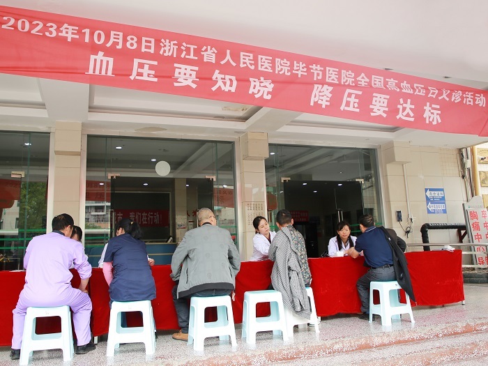 首页 > 新闻中心 > 卫生工作动态 > 正文 浙江省人民医院毕节医院开展2023年全国高血压日义诊 来源:贵州健康报 时间:2023-10-10 浏览次数: 10月8日是第26个全国高血压日,为有效引导群众做好自我血压管理,切实提高高血压知晓率、治疗率和控制率,浙江省人民医院毕节医院心血管内科医护人员在院内开展以“血压要知晓,降压要达标”为主题的义诊宣传活动,免费为群众测量血压,讲授高血压相关知识,发放高血压防治宣传手册。(来源:浙江省人民医院毕节医院 杜魏岑)编 辑:向 烨二 审:毕 锋三 审:赵 亮 分享到: