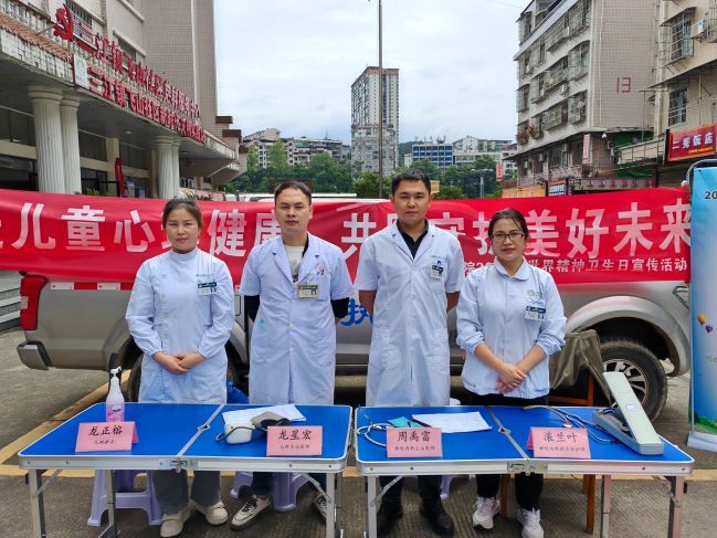 为呼吁全社会共同关注少年儿童心理健康,增进少年儿童健康福祉,引导群众正确认识和处理精神疾病及心理卫生问题,10月9日上午,锦屏县人民医院利用“赶集日”良好契机,组织神经内科主治医师周禹富、神经内科主任护师滚兰叶、儿科主治医师龙星宏、儿科护士龙正榕一行4人到锦屏县六街农贸市场外开展健康科普宣传和义诊活动。