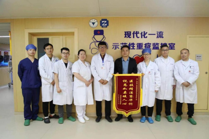 次日,李女士的儿子特意为ICU医护团队送来锦旗,李女士儿子握着孟婧主任的手感激的说:“当时如果我把妈妈送去凯里,我妈妈可能在路上就没了,多亏我当时把妈妈直接送到台江县人民医院,让她得到了及时救治,这么重的病,我以为治不好了,就算治好了也会有后遗症,没想到不但治疗得很成功,而且恢复得也很快,才几个月的时间已经恢复到生病前的状态了,真的是太感谢你了孟主任,感谢ICU所有的医护人员!没想到,我们台江县也有那么厉害的水平啦”。