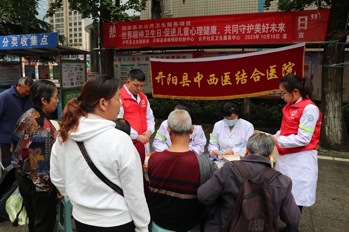 为广泛宣传高血压防治知识,提高广大居民对血压监测的重视程度,同时呼吁全社会共同关注少年儿童心理健康,10月10日,开阳县中西医结合医院组织相关医护骨干在县云开广场开展“全国高血压日”和“世界精神卫生日”宣传义诊活动。