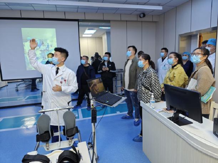 在三个小时的参观交流中,参观团实地考察参观了该院急诊科、介入手术室、脑卒中筛查联合门诊、神经功能血管检查中心、康复大厅、康复病房、意识障碍病区、神经重症监护病房、重症康复病房、重症康复大厅等卒中相关科室。