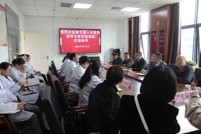 座谈会上,开阳县人民医院党委副书记、院长熊成锦代表医院对修文县人民医院领导及专家的到来表示热烈欢迎,并介绍了医院基本情况。他表示,近年来,在各级党委、政府及上级部门的正确领导和支持下,在全院干部职工的共同努力下,医院不断发展进步,医疗技术水平不断提升,在保障人民群众生命健康及推进地方经济社会发展中积极贡献力量。修文县人民医院同仁莅临交流,是医院的荣幸,希望在今后的工作中,两院加强交流,增进友谊,共同发展进步。