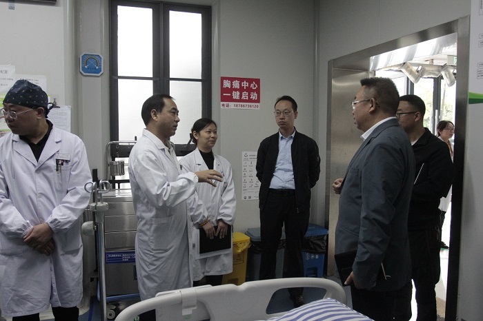 会后,修文县人民医院一行深入心血管内科、胸痛中心(急诊科)进行实地参观,详细了解开阳县人民医院胸痛中心绿色通道流程,急性胸痛患者院前急救、急诊转运、院内接诊、科间会诊等各个环节,与开阳县人民医院医护人员进行深入交流。