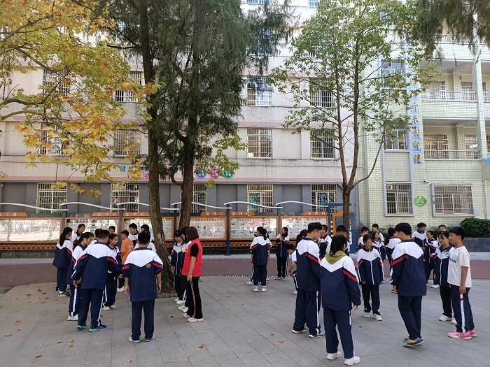 活动期间,学生分为六组,负责人与同学们签订团体契约,明确本次活动需遵守的规则:积极参与,真诚分享。首先进行的是“弹力球”活动,每组围成一个圆进行弹力球接力,此活动可增强学生之间的沟通与交流,加强彼此之间的配合,打破成员之间的拘谨。随后,在“袋鼠跳”活动中,每位同学都尽力为自己所在小组发力。伴随着学生们的欢声笑语,渐渐引发学生的感悟和体会,让大家认识到团体的力量。
