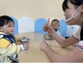 宝贝是毕节市妇幼保健院婴幼儿照护托育中心入园的第一批幼儿,入园时妈妈反映宝贝在家挑食、偏食,进食量少,经过托育中心保育老师的细心照料和耐心引导逐渐培养孩子良好的饮食习惯,宝贝现在主动进食,不挑食、偏食,还是老师的小助手和其他幼儿的模范。