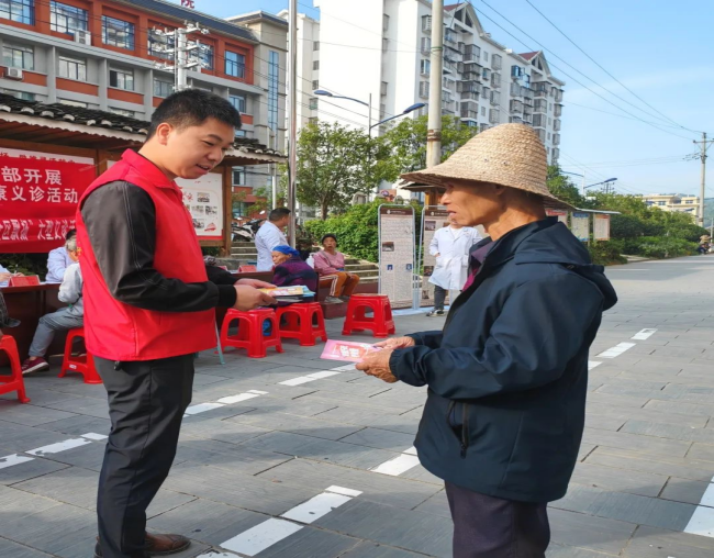 党员们身着红色马甲,积极投入到社区志愿服务工作中,为社区居民讲解疾病的预防治疗、饮食安全、合理用药等健康知识,把“双报到”与社区志愿服务工作相结合,将关心关爱送到社区。