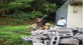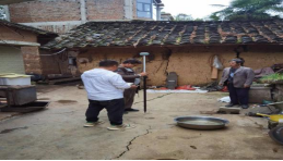 (图为:武德明积极参加村两委及第三方测绘公司进行的测量宅基地工作)