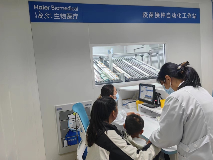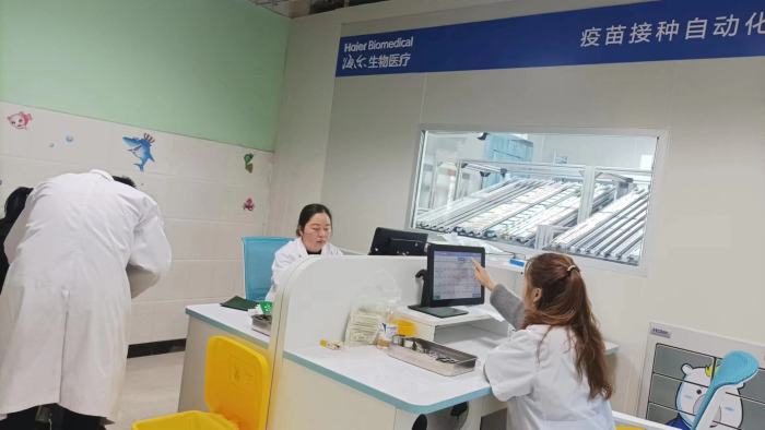 为此,冯三镇卫生院联合海尔生物医疗,共建了AI数智化预防接种门诊,通过自动化、物联网、AI等数智技术融入日常接种场景,实现了存储接种一体化,全程温度无断点,自动发苗零差错,盘点库存无人化。