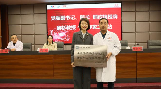 会上,贵州省人民医院心血管内科俞杉教授授予开阳县人民医院为“贵州省人民医院心血管内科专科联盟单位”;院党委副书记、院长熊成锦为“俞杉教授个人专家工作站”授牌。