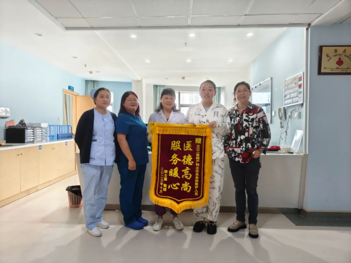 “真的非常感谢你们,你们让我感到很安心。”三〇二医院产科上演了温馨的一幕,郭女士拿着一面写有“医德高尚 服务暖心”的锦旗”送到产科医护团队手里。郭女士因胎心监测异常,等待时间过长进行了剖宫产手术,顺利诞下六斤八两宝宝。初次生育郭女士感到十分紧张、焦虑,我们产科团队根据病情进行术前讨论,制定治疗方案,在与郭女士及家属充分沟通后打消了其顾虑。住院期间,妇产科团队专业的技术和精心的护理让郭女士深受感动。时隔三十年,同一医院,不同感受,环境设施大大改善,服务一如既往的好,生产过程医生和助产士始终陪伴在我的身旁,给予鼓励,给予专业的分娩指导,让我感觉到家人般的温暖!