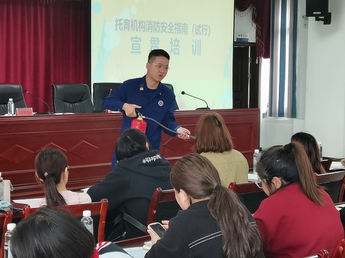 会上,通报了开阳县托育机构安全生产工作情况。县消防救援大队罗云峰老师重点围绕《托育机构消防全指南(试行)》的内容进行了详细讲解,然后通过一个个生活中的案例生动讲解火灾发生的成因、危害以及带来的后果,并现场演示了消防器材该如何使用,让与会人员对火灾的严重性有了更深刻的认识。