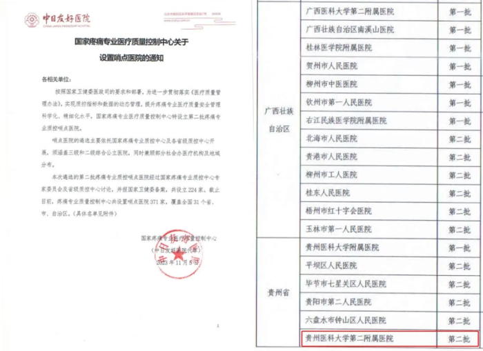 【喜讯】黔东南州唯一一家!贵医大二院成为“国家级疼痛专业质控哨点医院”