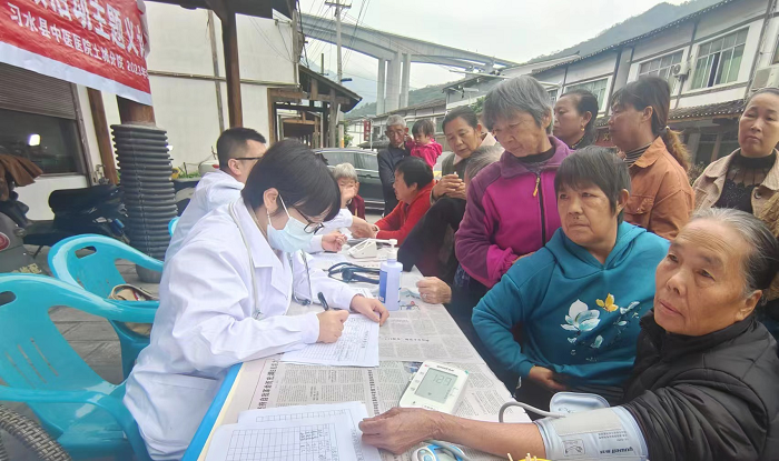 “大爷,您日常还是要注意控制好血糖。”“小朋友,阿姨给你演示,这样子才是刷牙的正确姿势。”来自遵义市习水县土城镇的10余位医生各司其职,为群众提出合理的诊疗建议和治疗方案。现场的医护人员还为群众提供测血糖、量血压等免费服务,并为群众发放药品。
