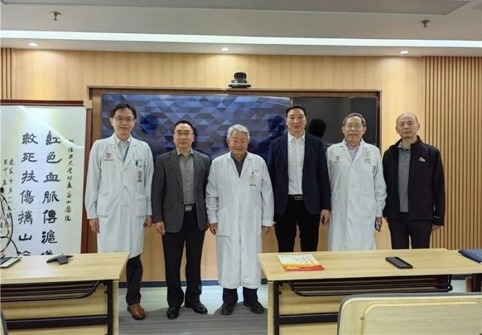 当天上午,王天培、袁正强向周良辅院士及华山医院神经外科专家团队汇报了华山医院自2013年帮扶以来遵义市第一人民医院在学科实力、人才队伍、项目立项、技术进步和服务能力上取得的丰硕成果,观看了《红色血脉传沪遵,救死扶伤携山海》专题视频,并简要介绍了遵义市第一人民医院近期工作情况及"一院两区"发展愿景,诚挚希望周良辅院士及专家团队继续支持遵义市第一人民医院发展,帮助遵义市第一人民医院建设"大专科小综合"脑科医院。周良辅院士及华山医院神经外科对近年来遵义市第一人民医院取得的成绩和快速发展给予充分肯定,对即将建设的脑科医院予以赞赏,表示将继续在人才队伍与学科建设上加大对遵义市第一人民医院的支持,会同地方政府一道,推动遵义市一医与五医协同发展,共同助力老区人民。周良辅院士特别强调,要制定切实可行的措施,拿出详细周密的计划,加大人才队伍培养,形成人才梯次结构,通过3至5年的努力,为医院高质量发展集聚力量。