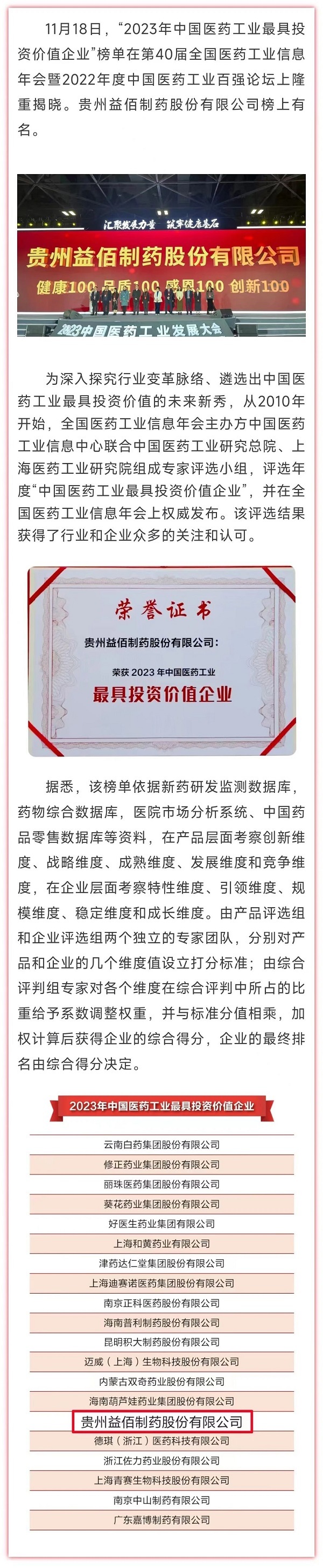 首页 > 新闻中心 > 卫生工作动态 > 正文 益佰制药荣获“2023年中国医药工业最具投资价值企业” 来源:贵州健康报 时间:2023-11-20 浏览次数: (来源:益佰制药)编 辑:向 烨二 审:毕 锋三 审:赵 亮 分享到: