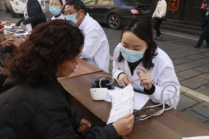 为群众测量血压并耐心讲解心梗的预防及救治等相关知识